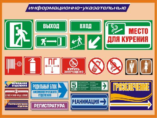 - стенды, знаки, указатели;